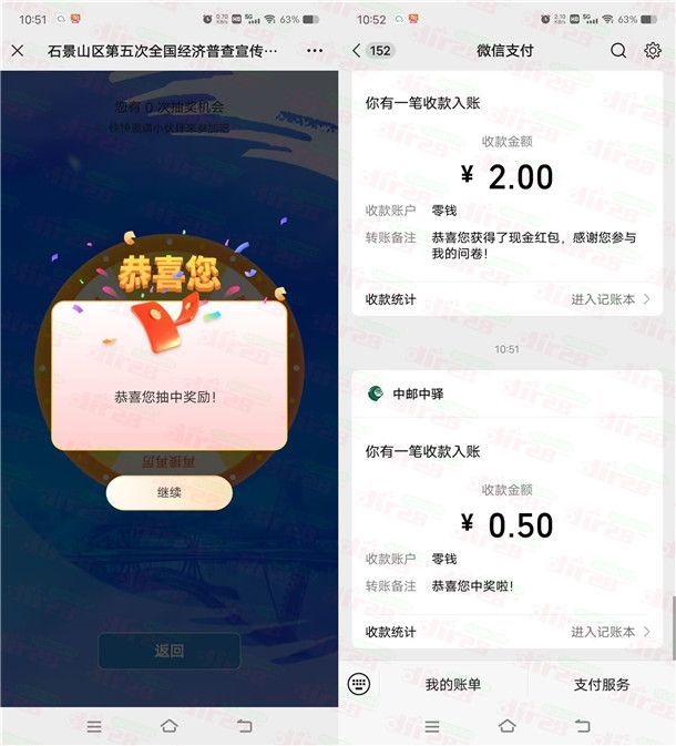 石景山统计经济普查答题抽随机微信红包 亲测中0.5元