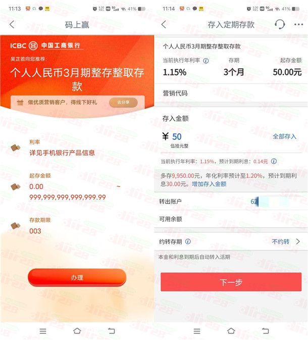 1、微信先扫描下面第1个二维码进去,跳转到中国工商银行APP存入50元定期(等下就可以取回,不用真的存这么久)这个活动全国都可以去