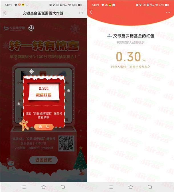 交银投顾管家圣诞雪人大作战抽0.3-8.8元微信红包 亲测中0.3元
