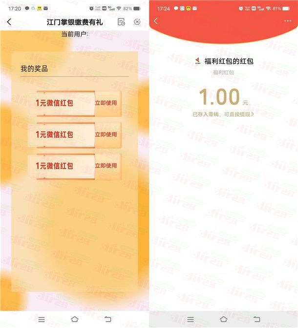 农行掌银缴费有礼活动抽1-100元微信红包 亲测中3元秒推