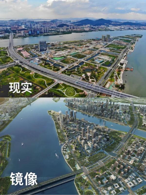 例如:站在广州南沙区已建成的明珠开发大厦上,远眺珍珠湾的灵山岛,尚处于开发阶段。但通过虚拟现实设备或平板电脑,人们可以清晰地看到,已经规划但尚未建成的建筑以1:1的比例叠加在现有现实之上——这是晨景科技为打造的“镜像世界”。当地政府。
