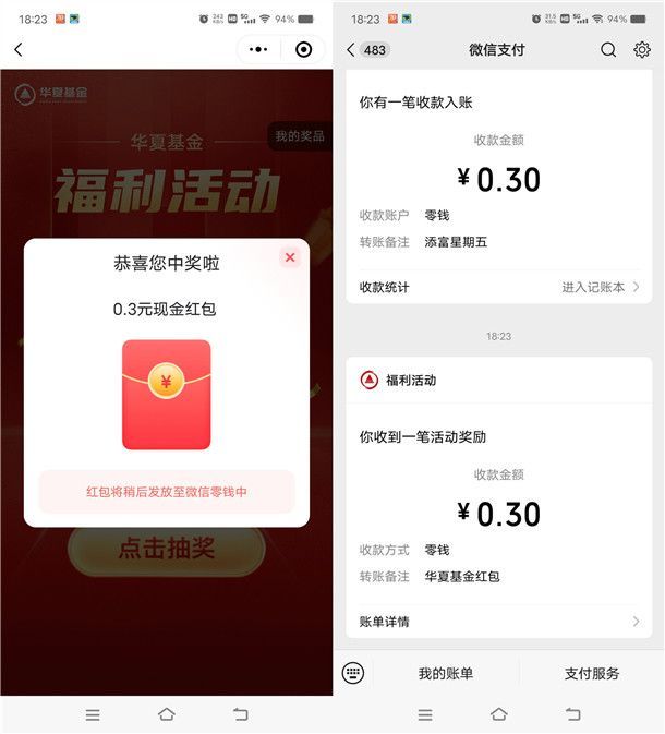 华夏基金小程序简单答问卷抽随机微信红包 亲测中0.3元