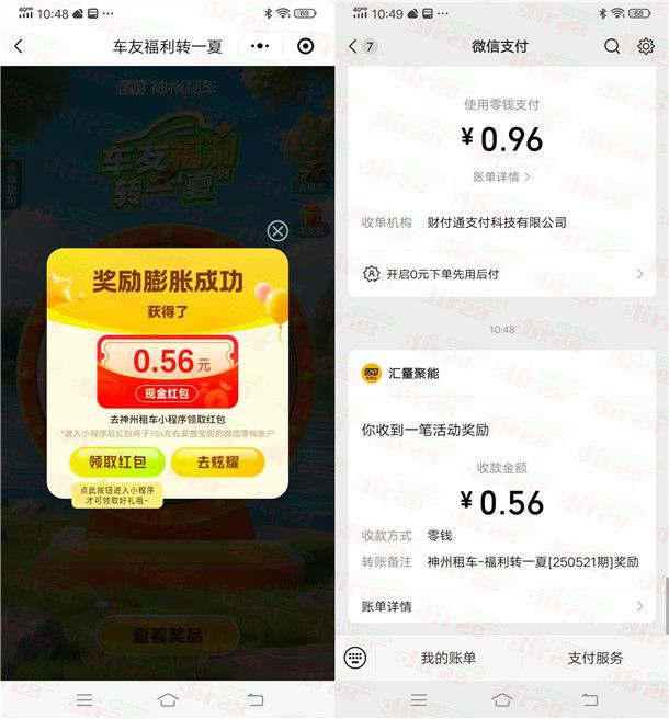 神州车友会福利转一夏抽0.18-88.8元微信红包 亲测中0.56元