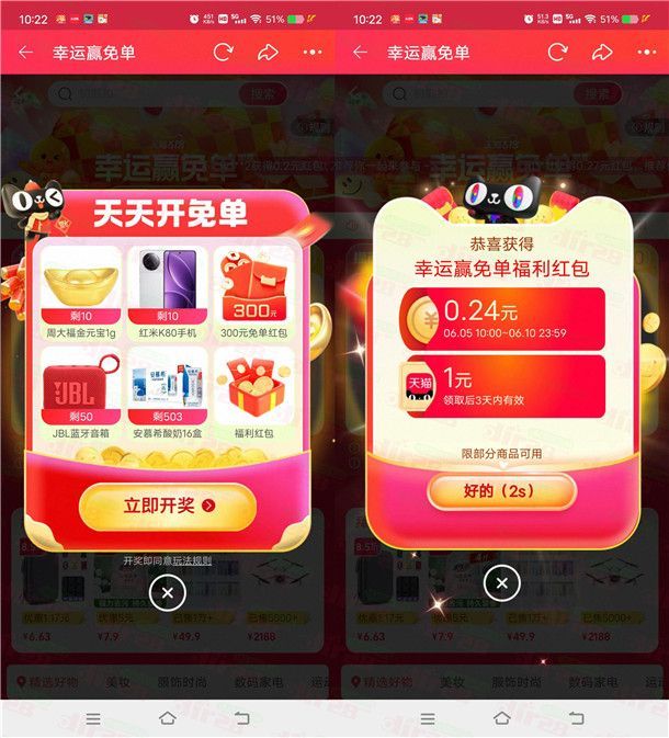 淘宝幸运赢免单抽最高300元无门槛红包 每天还会必中1个红包