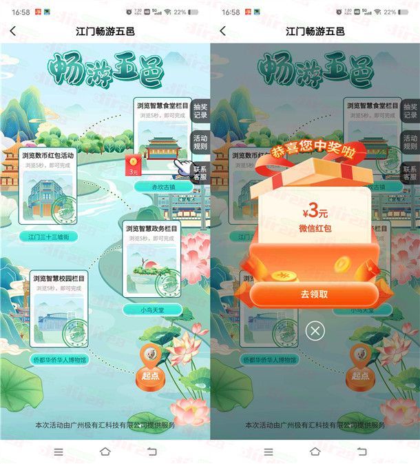 农行江门畅游五邑必中3元微信红包秒推 全国可去 限部分用户
