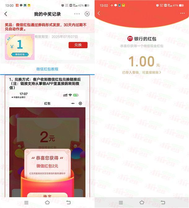 农行感恩有你活动必中1-50元微信红包 亲测中1元 限部分用户