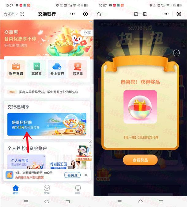 活动地址:微信打开:#小程序://交通银行/3ph6a3cTRyHxlAD