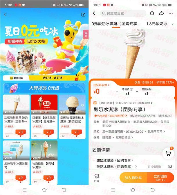 美团0元吃冰淇淋活动 今天0点、9:30、15:30限量可领