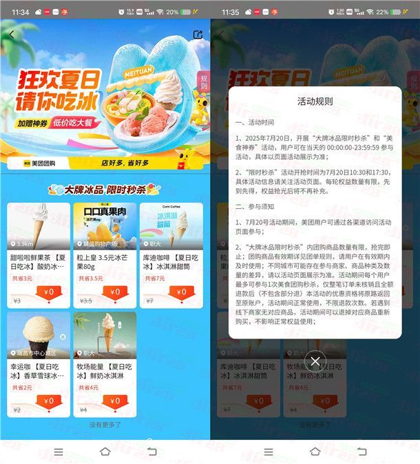 美团狂欢夏日活动0元吃冰淇淋、冰芒果 数量限量