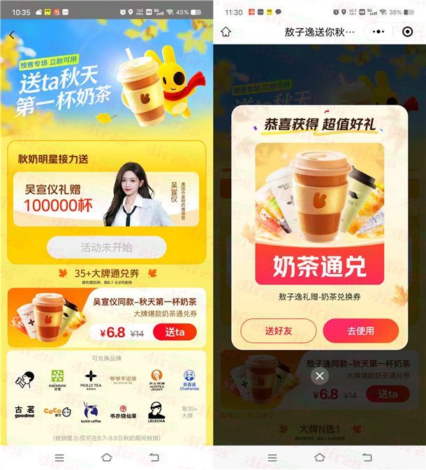 小编提示:打开美团APP搜索【吴宣仪】进去参加,上午11:30分开始,抢10万分奶茶免单券,数量限量