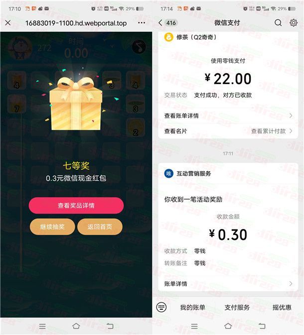 小编提示:小游戏达到100分抽0.3-188元红包,3次机会,刚中0.3元