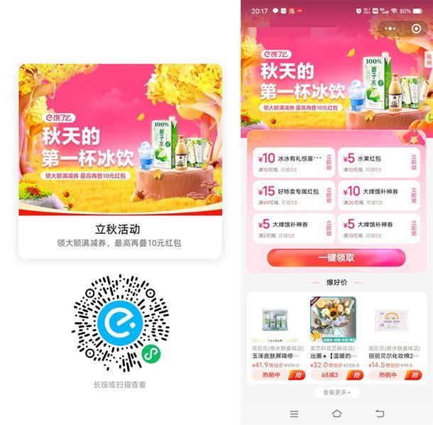 立即参与:打开饿了么APP搜索【86222】进去参加