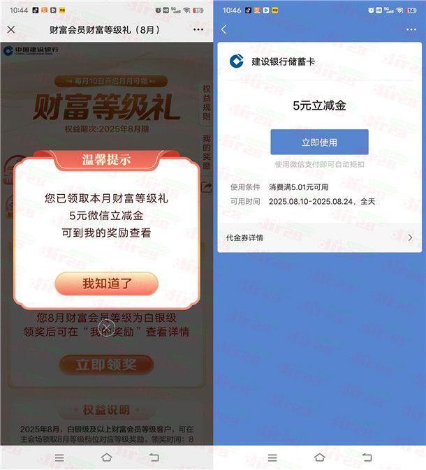 建行财富会员领5-188元微信立减金、7元京东专区优惠券