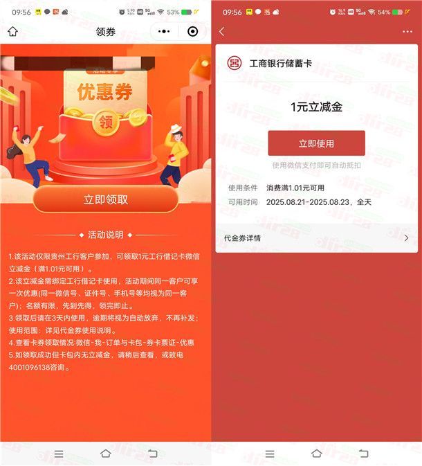 工行小程序简单领取1元微信立减金秒到 数量限量先到先得