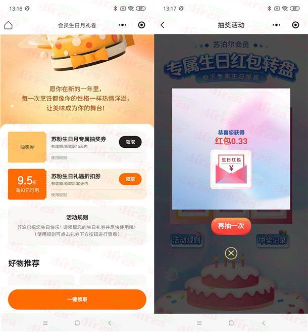 参加苏泊尔举办的生日月礼券抽5万个红包活动,通过打开微信进去小程序活动里,进去下拉页面西安领取第一个抽奖券,然后点使用进去抽奖,有机会中到0.33-9.88元微信红包,小编测试中到0.33元红包不秒推。