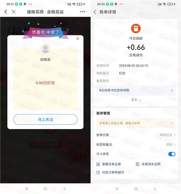 今日高邮接桃花雨小游戏抽0.16-6.6元现金红包 亲测中0.66元