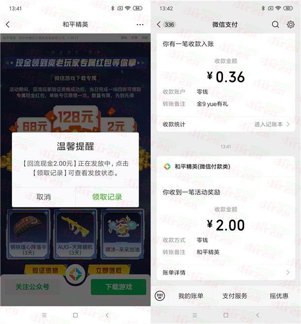 和平精英微信回归老用户玩1局领2-128元微信红包 亲测中2元