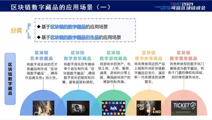 一是区块链数字收藏的典型应用场景,包括区块链艺术收藏、区块链数字音乐收藏、区块链数字游戏收藏等场景