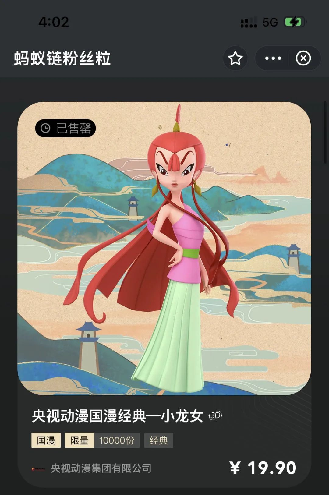 11月23日,央视动画联合第三方支付平台发布了两款3D数字合集,分别是国漫经典形象——小龙女和哪吒。这两款产品上市后很快就被抢购一空。