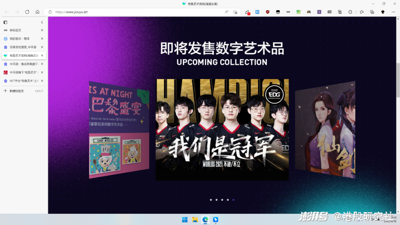 港股研究所从交流会上获悉,“有鱼艺术”上线首日用户数已突破58万。 6月20日,平台将开启首个数字合集《流氓兔-太空》系列的购买。目前,“有鱼艺术”已预留动漫IP喜羊羊、灰太狼等多款IP;游戏IP仙剑奇侠传、轩辕剑; EDG电竞俱乐部;国际数字艺术教父Andrew Jones、潮流艺术家王薇等IP。