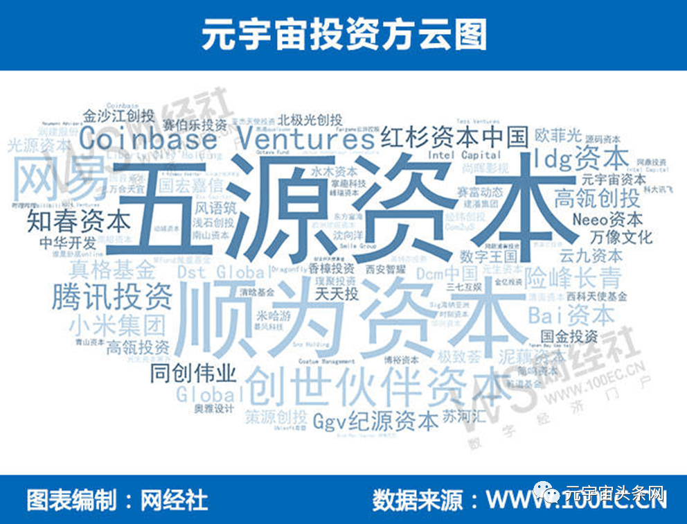 元界的爆发也吸引了众多投资机构入局。《报告》显示,元界的活跃投资者包括五元资本、顺为资本、知春资本、高瓴资本、红杉资本、元界资本、万向文化等VC/PE,以及网易、阿里巴巴、腾讯等产业资本.
