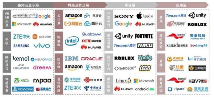 参照目前的技术水平,在元界的八大特性中,“身份”和“社交”在部分高端3A大作中已经实现; “沉浸式”和“低延迟”随着交互技术和5G的发展而发展起来。应用已达到入门级; “多元化”、“无处不在”、“经济”、“文明”的实现需要多项核心技术来构建元界的底层技术框架,