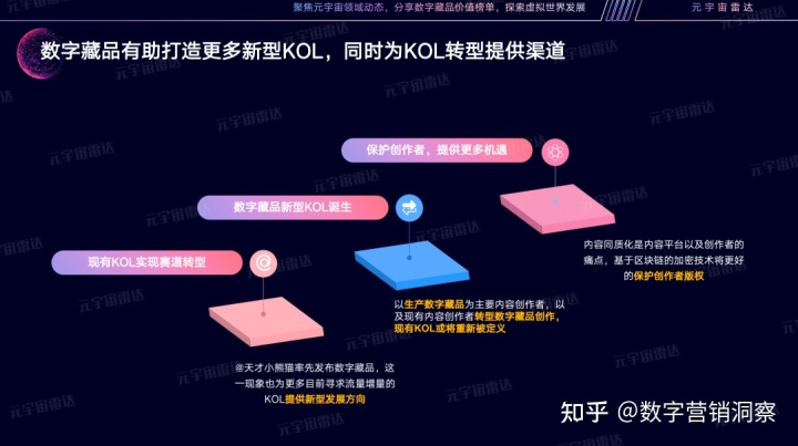 从内容的角度来看,内容同质化是内容平台和创作者的痛点,而基于区块链的加密技术将更好地保护创作者的版权,现有的内容创作者可以参与到数字馆藏的创作中。,KOL可能会被重新定义,未来会有更多的KOL专门从事数字馆藏的创作。