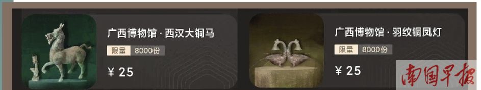 “发售前几天数字藏品,我在朋友圈发了一条消息,人气出乎意料,连我自己都没买。”广西博物馆文创团队成员表示,这三套数字馆藏数量有限。 8000本,每本25元,上架1分钟内全部售罄。