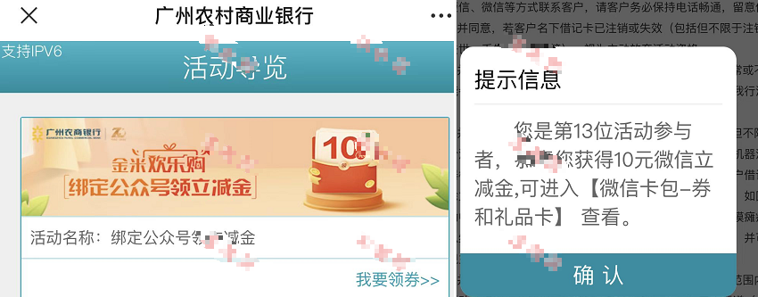 新一期广州农商(珠江直销)银行绑定公众号领10立减金