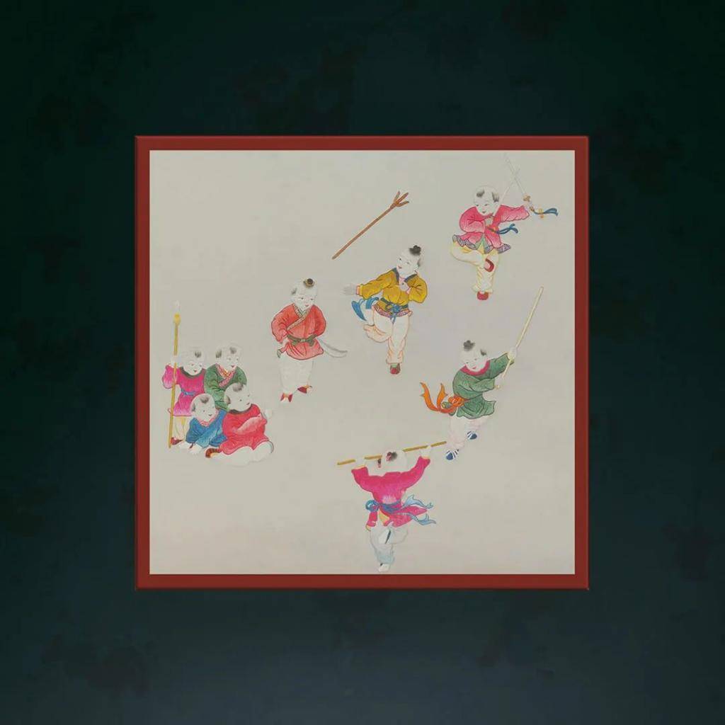 童玩的天真形象是古代艺术创作的重要题材,也是中国传统文化中吉祥的象征。儿童玩耍的形象早在唐宋时期就出现在现代绘画中。婴儿玩耍的主题出现在各种绘画、瓷器和其他艺术品中。此款刺绣,绣工精湛数字藏品,灵活再现了各种儿童运动场景,人物刻画细腻,人物灵动生动。抖空竹等运动、娱乐、娱乐等活动场景。
