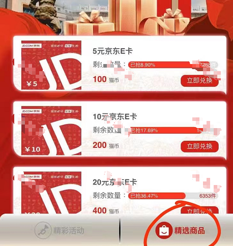 定位陕西延安,公众号陕西好猫,下面选择消费者商城,进去后选择猫币商城,右边悬浮框(没有的反复重进),点进去完成问卷和完善信息任务,400猫币兑换20E卡,建议换10的换两个秒到,20E卡不秒到