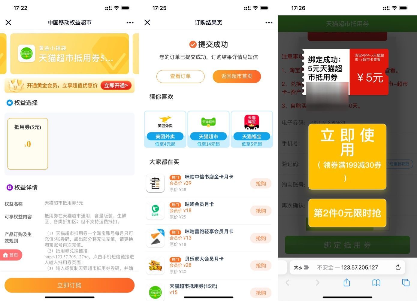 移动会员领5元天猫超市卡