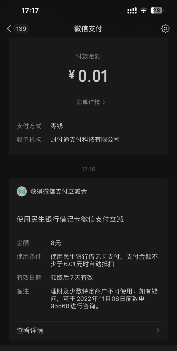 打开京东金融小金库通过页面开一张数字小金卡其实就是开一张民生银行3类账户绑定vx立得6元立减金 再消费一次 立得6元 一共12元(貌似微信拿过民生首绑立减金的没有首绑立减金)