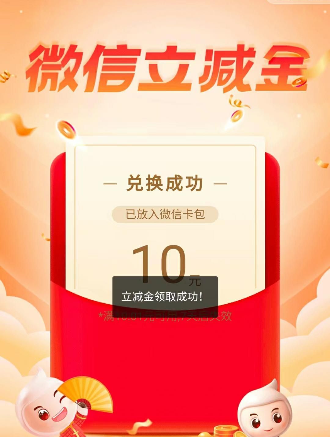 领取10元微信立减金,目前貌似没货了(不过没关系,后续补货后自动发放卡包)
