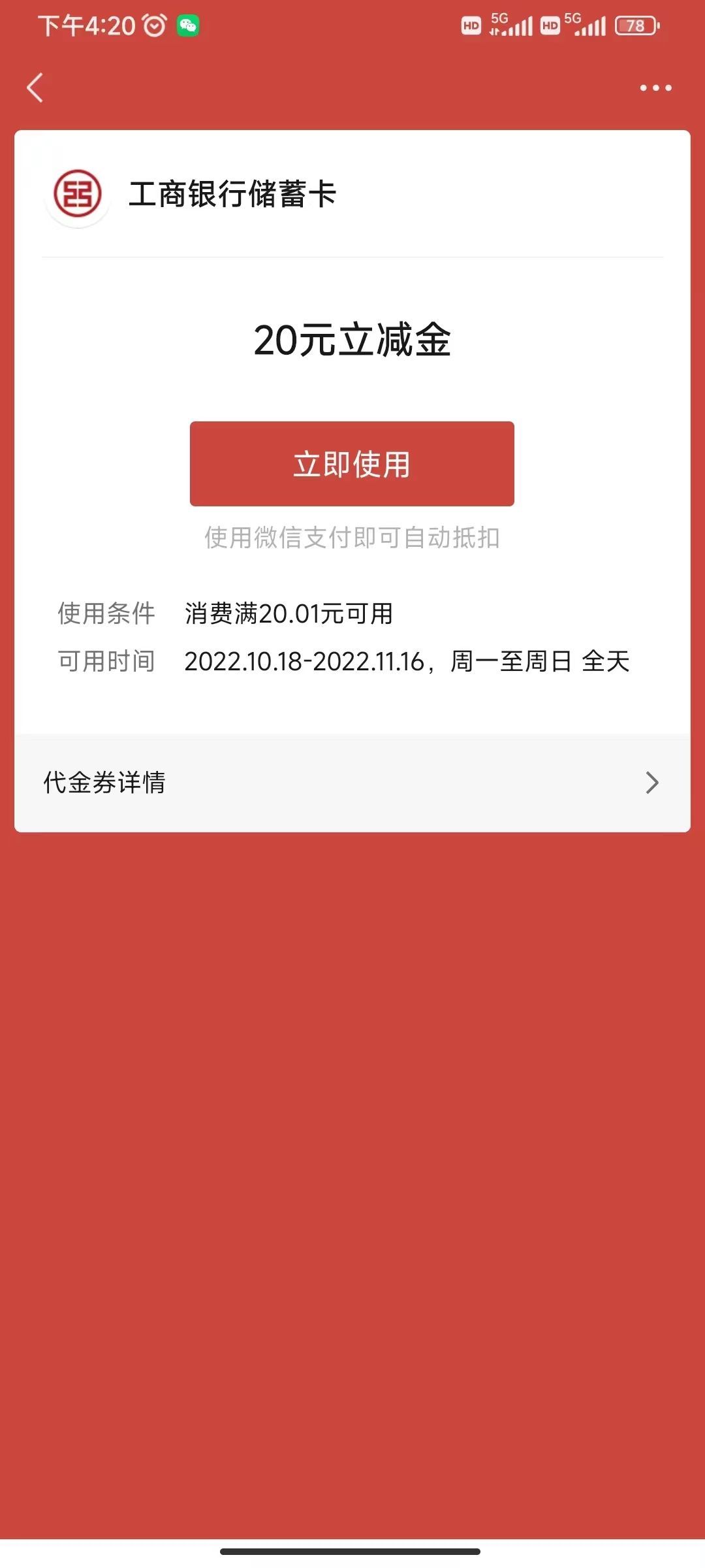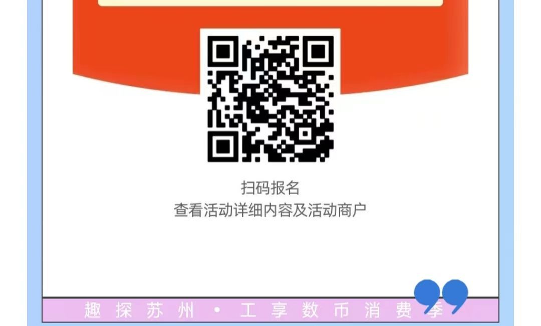 活动期内,用户通过活动渠道报名“趣探苏州工享数币消费季”活动,报名成功,在活动指定商户用户工行数字人民币钱包消费满50以上,即有机会可获得20元微信立减金机会。