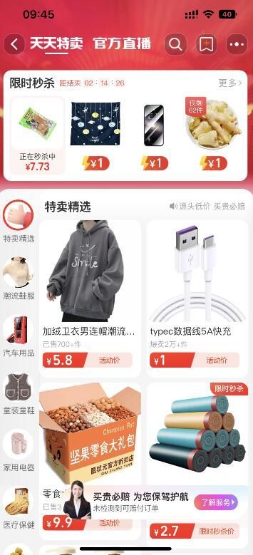 这个活动是在淘宝天天特卖卖场可以限时整点1元购买多种商品