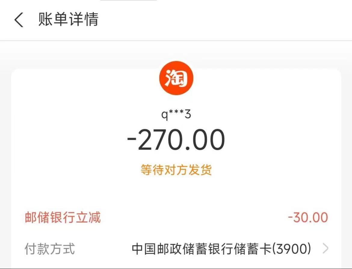 重庆邮储借记卡淘宝闲鱼购物满300减30