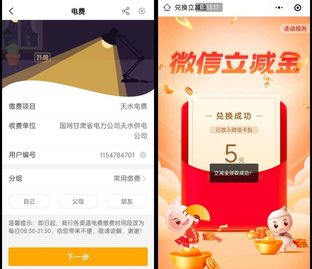 (飞甘肃)农业银行缴费抽5元立减金和1元买顺丰10元券