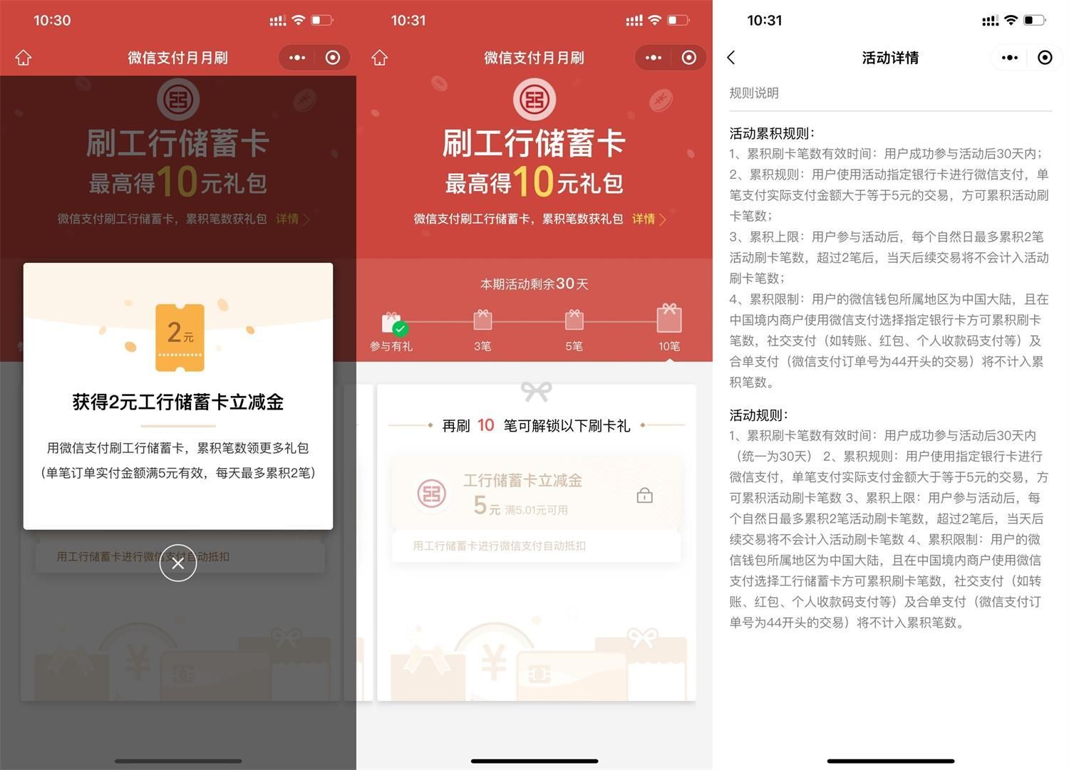 工行消费领最高10元微信立减金