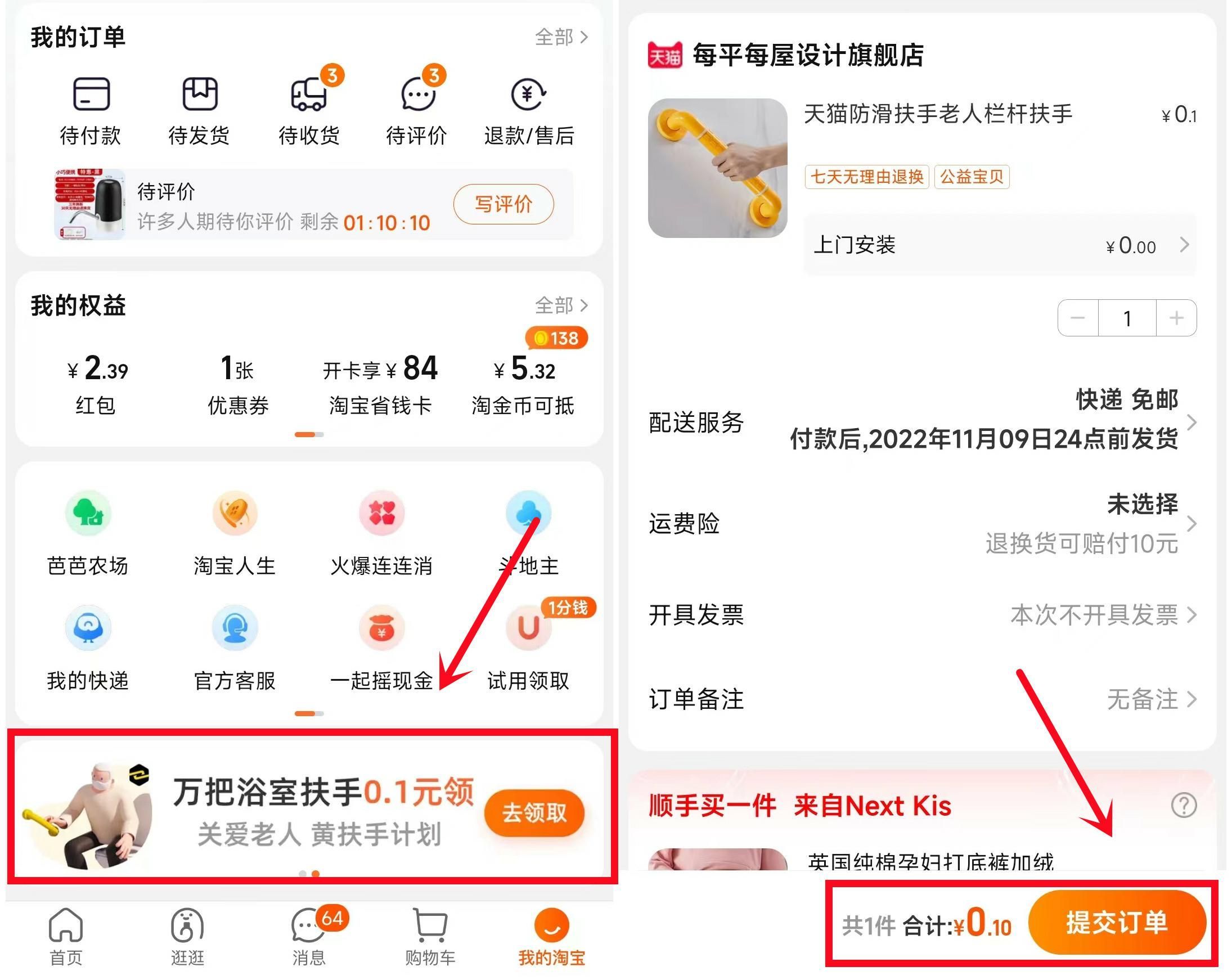 淘宝0.1元购浴室扶手