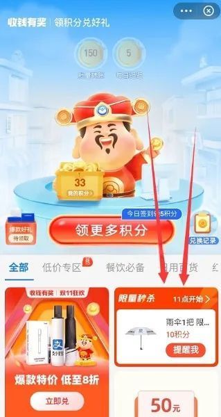 支付宝商家服务3个整点10积分领雨伞1把 包邮