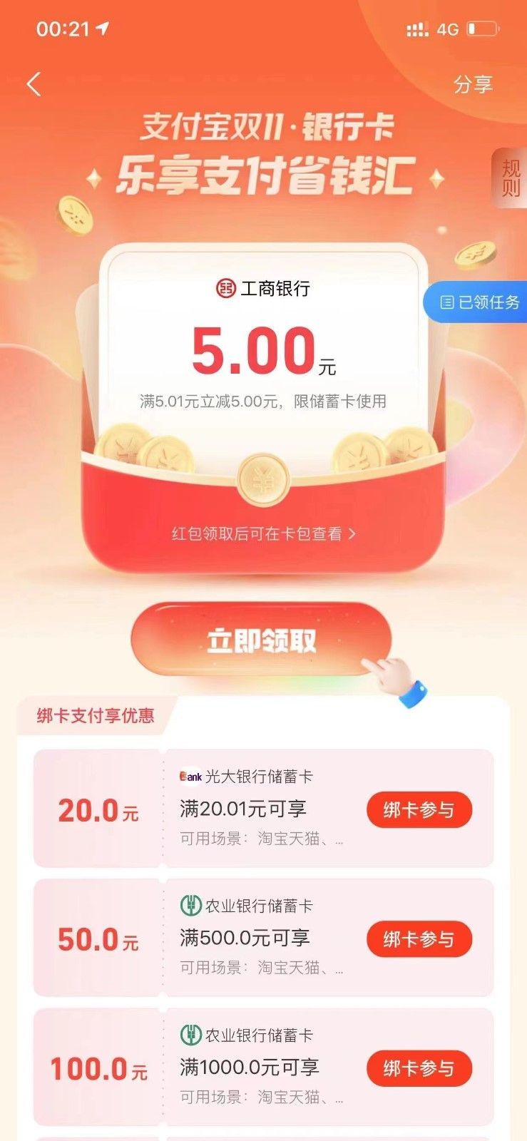 支付宝双11银行卡支付省钱汇 领取支付红包和变现方法
