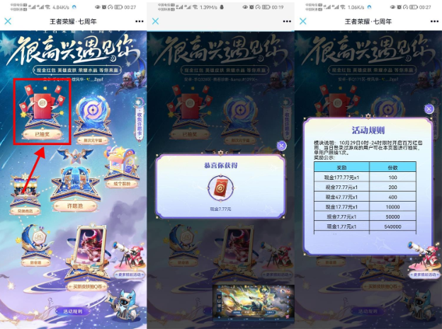 登陆王者荣耀->QQ打开地址->点第一个红包雨抽奖即可->兑换商店做任务集许愿卡还能兑换永久皮肤