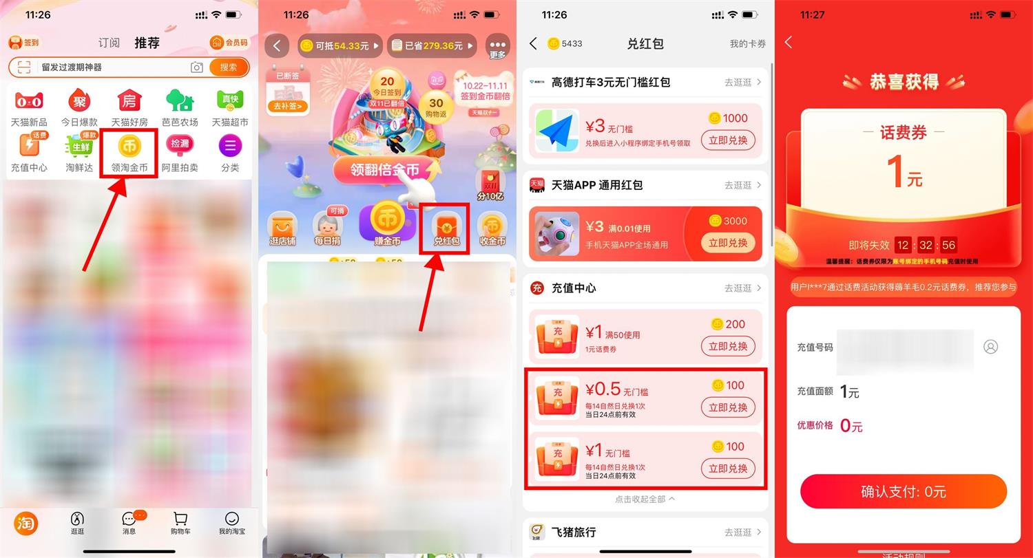 淘宝淘金币兑换0.5充2元话费