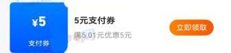 打开星图金融APP首页右上角【领券中心】-【普惠专区】有一张5元支付券
