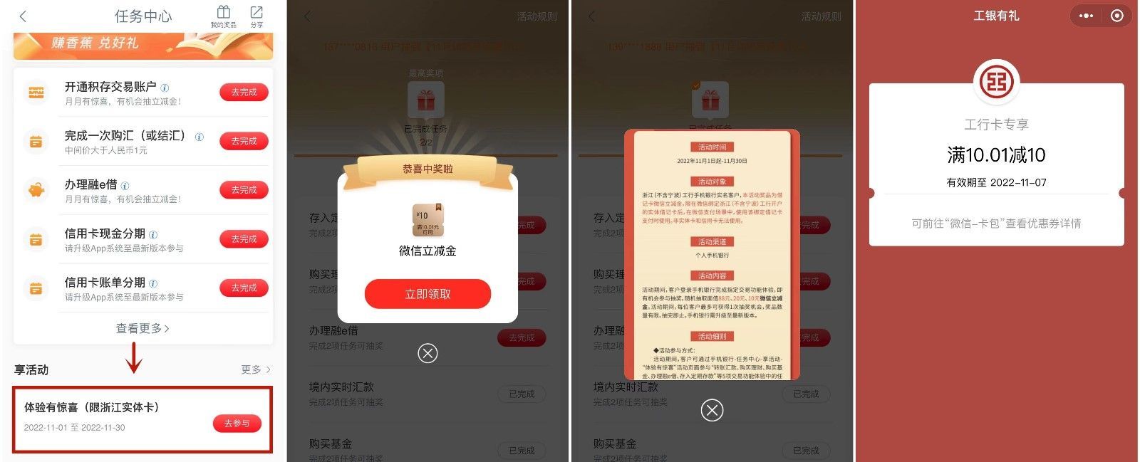 浙江地区【不含宁波】工行app——任务中心——体验有惊喜抽10-20立减金  自测