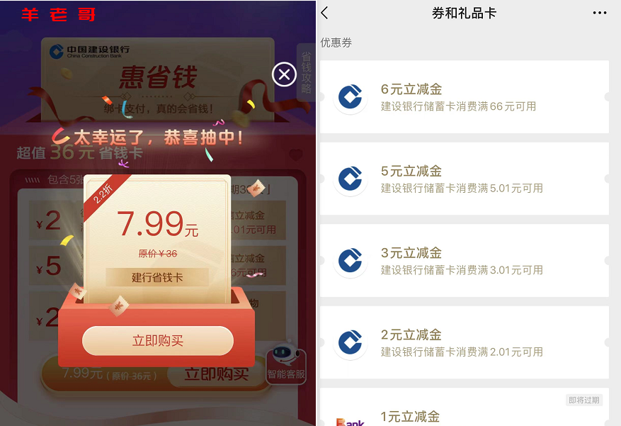 建行公众回复:惠省钱:https://ssz.ccb.com/couponCenter/#/