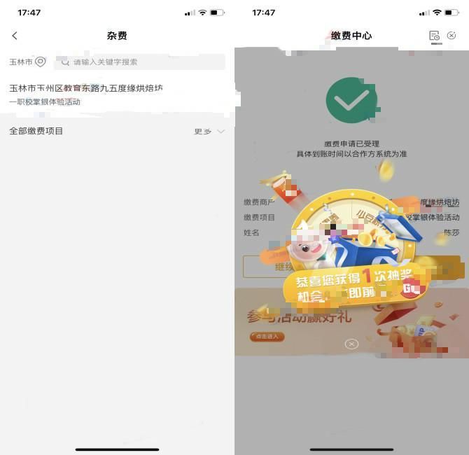 进入第一个如下图模板,(姓名什么的乱填)缴费0.18元后确认会弹出抽奖
