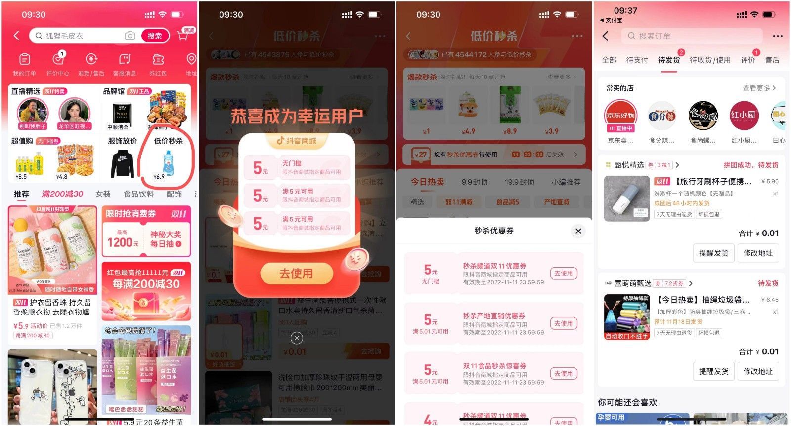 抖音幸运用户领取3张5元优惠券 亲测0.01元购买实物