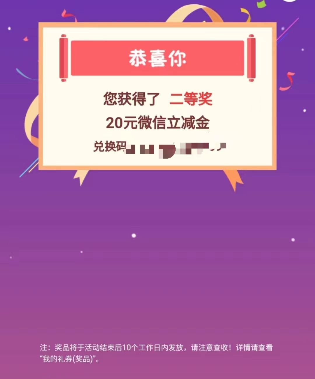 转账0.01元后点击底部【幸运大抽奖】抽10或20元微信立减金,抽到后复制兑换码